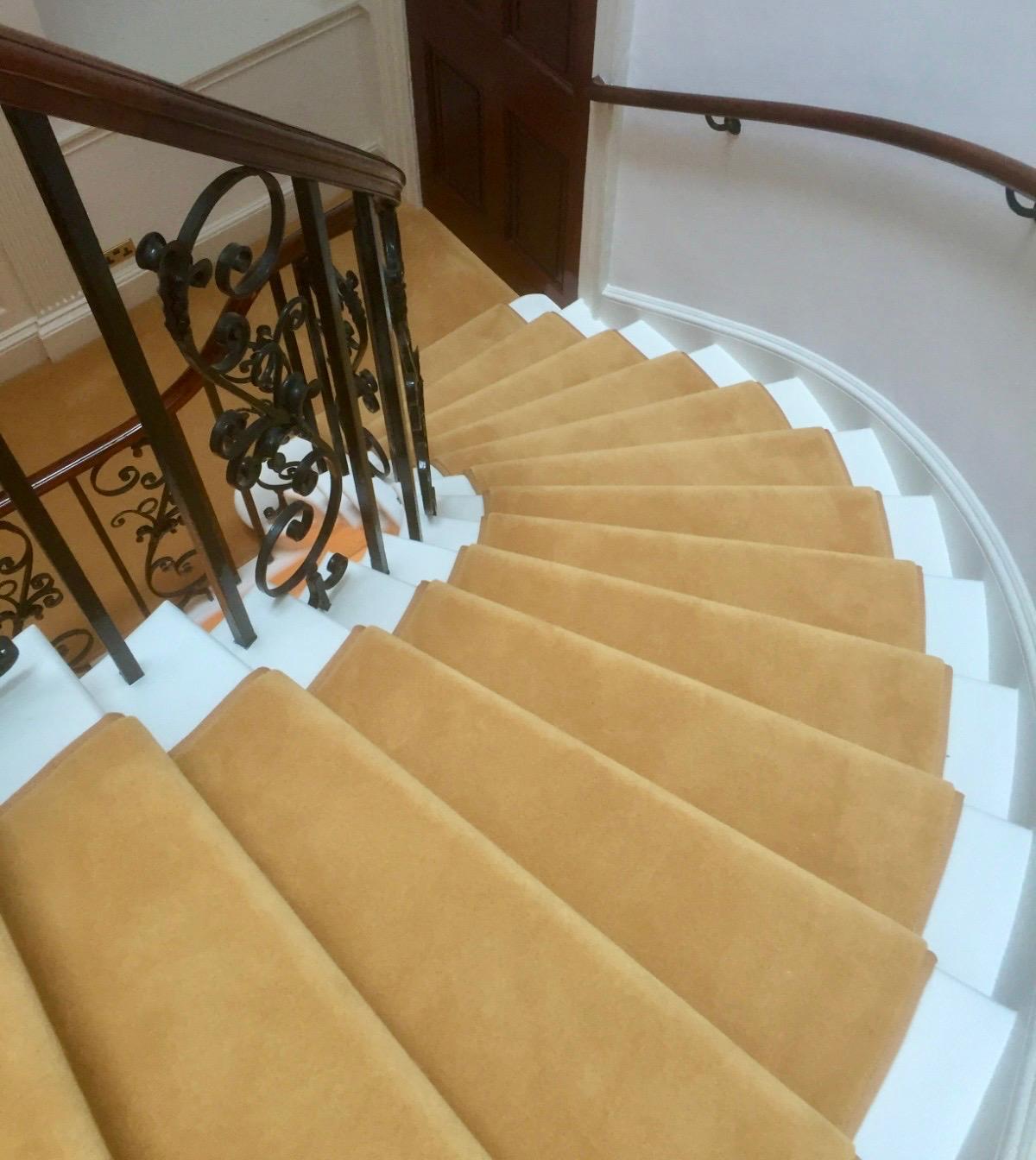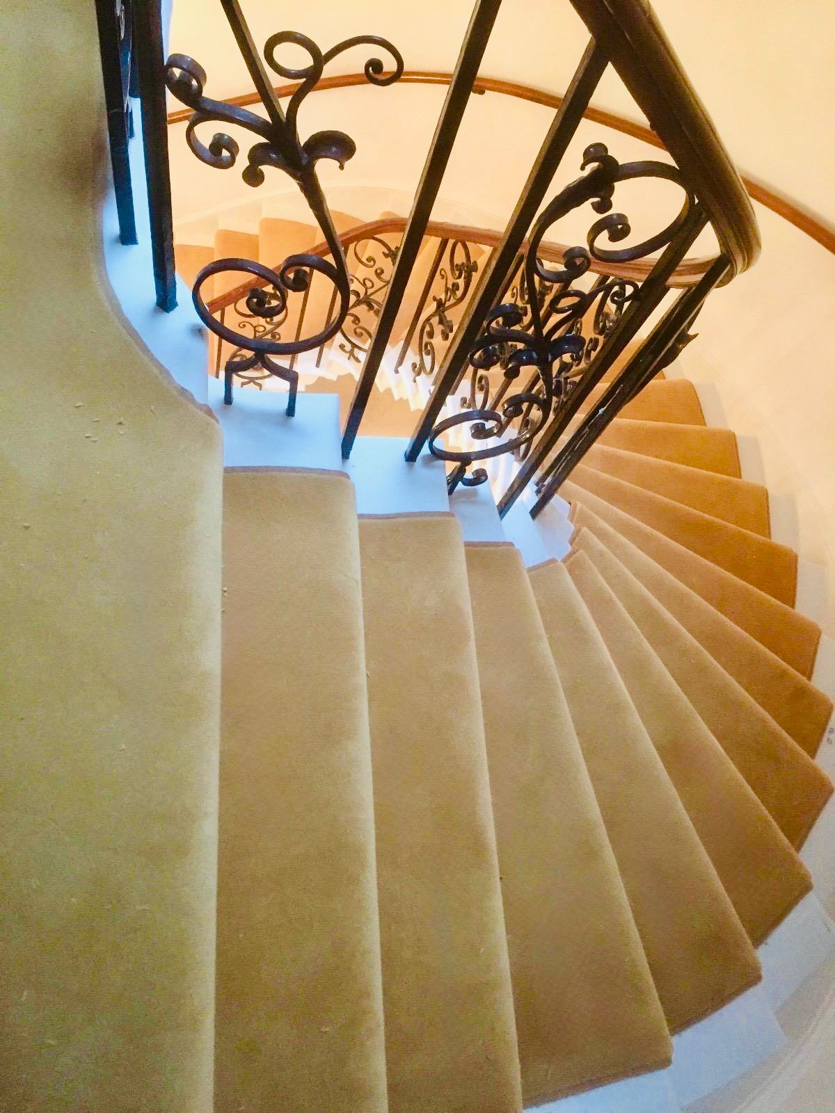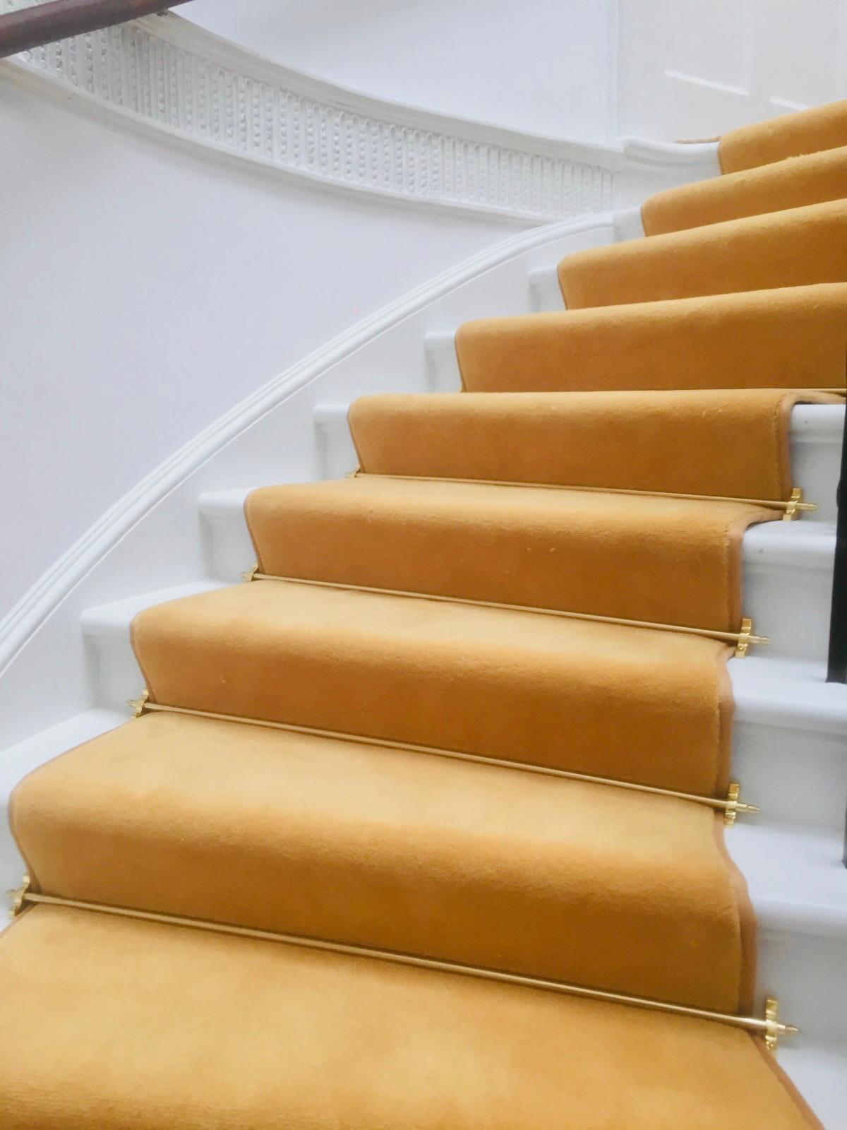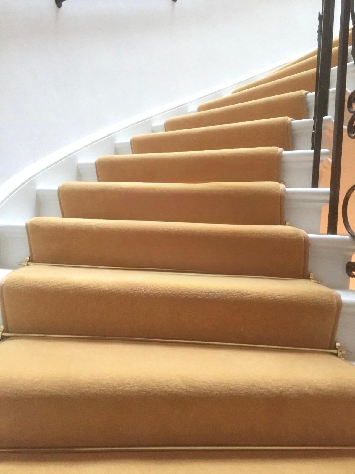 Our skilled craftsmen then created and installed this elegant stair runner, meticulously tailored to enhance and complete its refined surroundings.